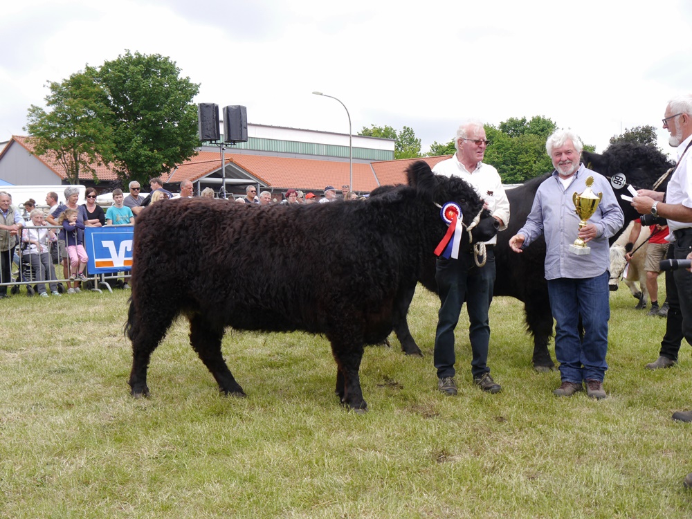 Vier Galloway-Bullen rundeten das Programm ab: Der vierjährige „Optimist aus dem Suletal“ von Stefanie und Stefan Nipp aus Tröndel überzeugte durch seinen Rassetyp, seinen enormen Rahmen und sein korrektes Skelett. Den 1b-Platz belegte Jimmy vom Altrhein; gezüchtet von Hans Gugumus aus Gimbsheim (Jennifer und Carsten Haalck / Linden) vor Pirol vom Fieler Moor (Christoph Rohrmoser, Hemminstedt) und „Gustl von de Friweh“ der Familie Dirks aus Duvensee.